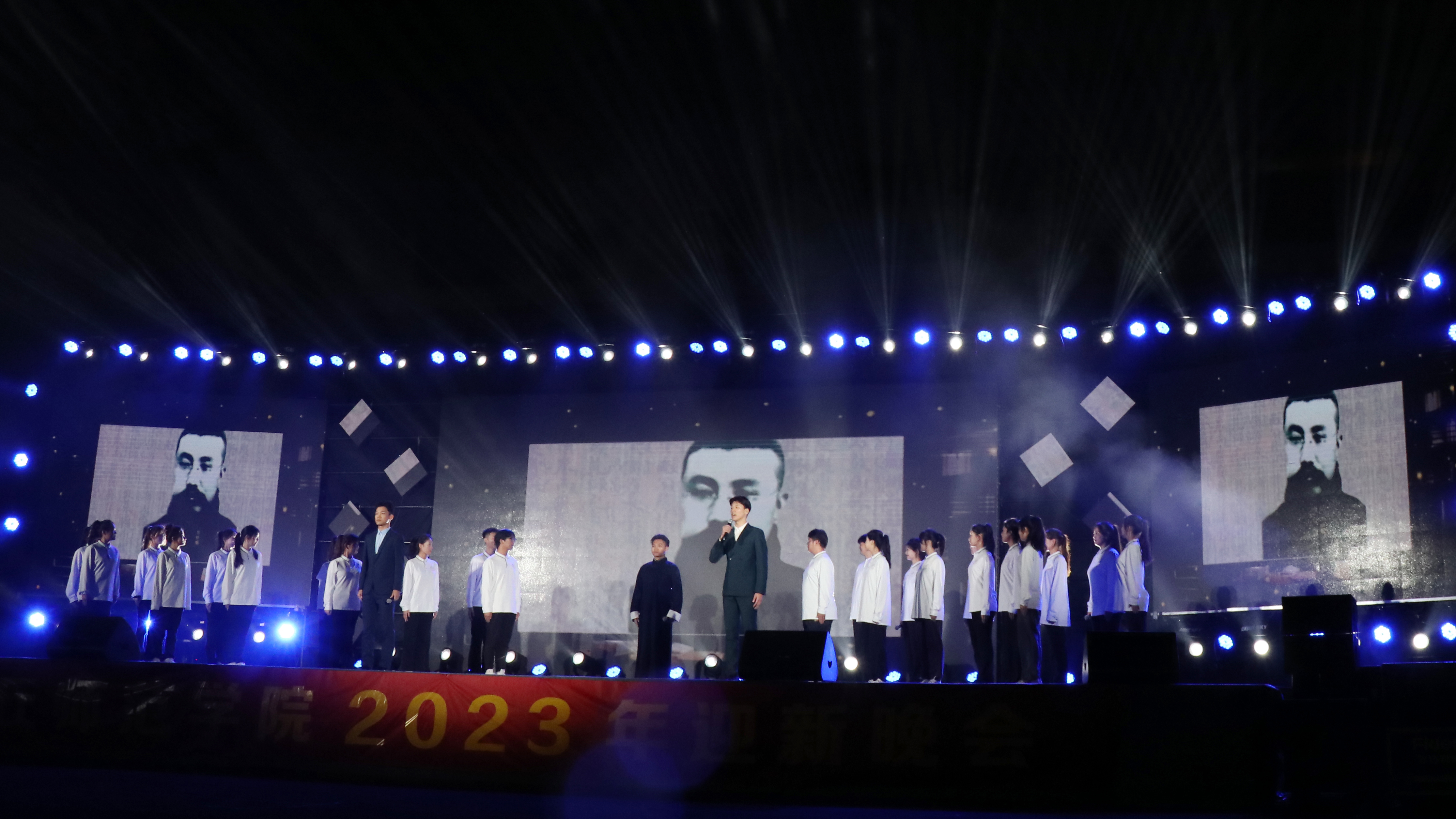 校直有关部门和各学院领导老师及2023级全体新生现场共享视听盛宴。晚会通过官方媒体平台同步直播,万余名师生和家长线上线下同步观看,共同见证新同学们即将开启的人生新征程。