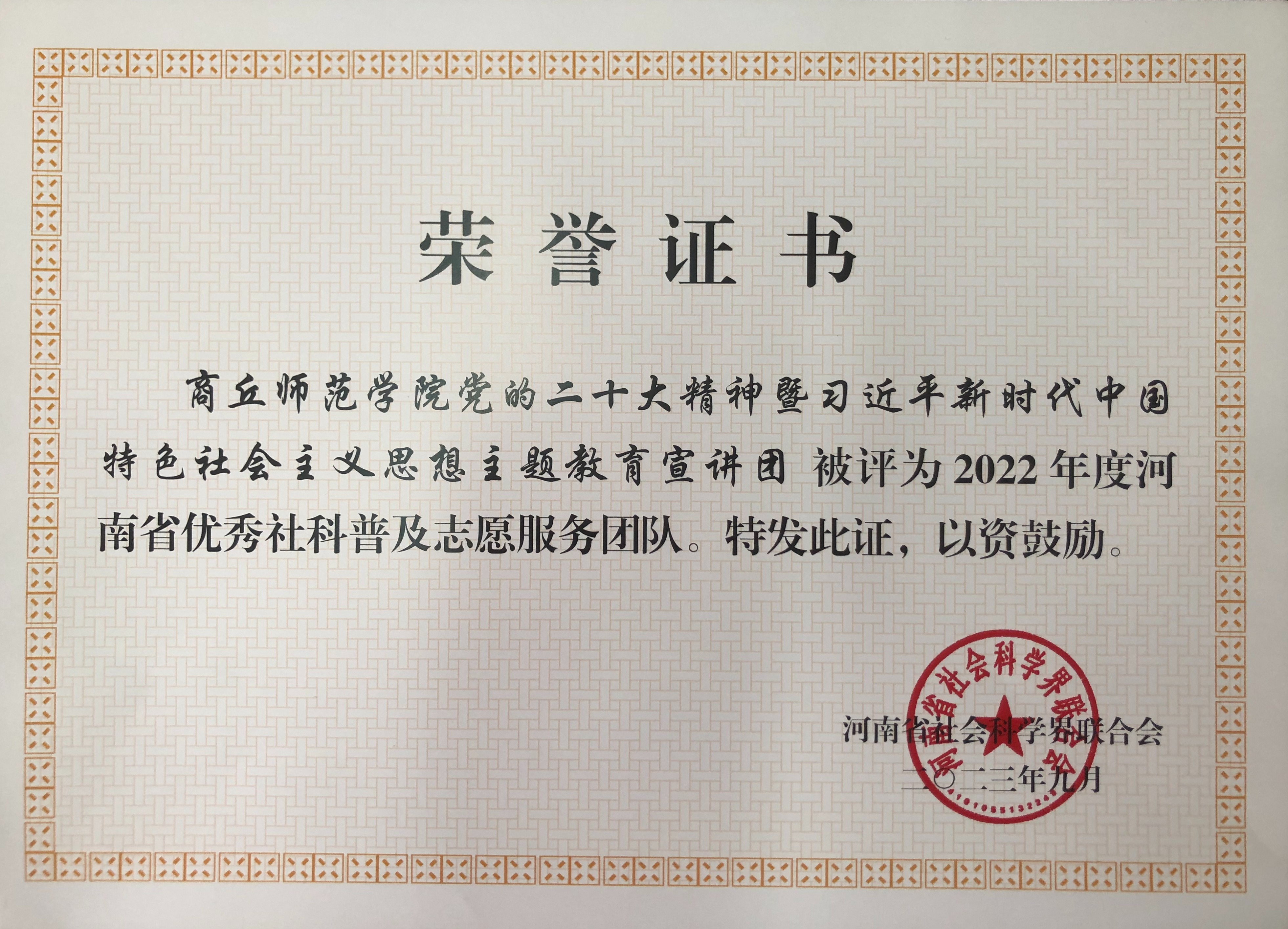 近日,河南省社会科学界联合会印发《关于公布第十批河南省社会科学普及基地等七项评选结果的通知》,玩滚球官网以马克思主义学院教师为主体组建的玩滚球的十大正规平台党的二十大精神暨习近平新时代中国特色社会主义思想主题教育宣讲团被评为2022年度河南省优秀社科普及志愿服务团队。马克思主义学院党委书记龚志宏教授被评为2022年度河南省优秀社科普及指导员。