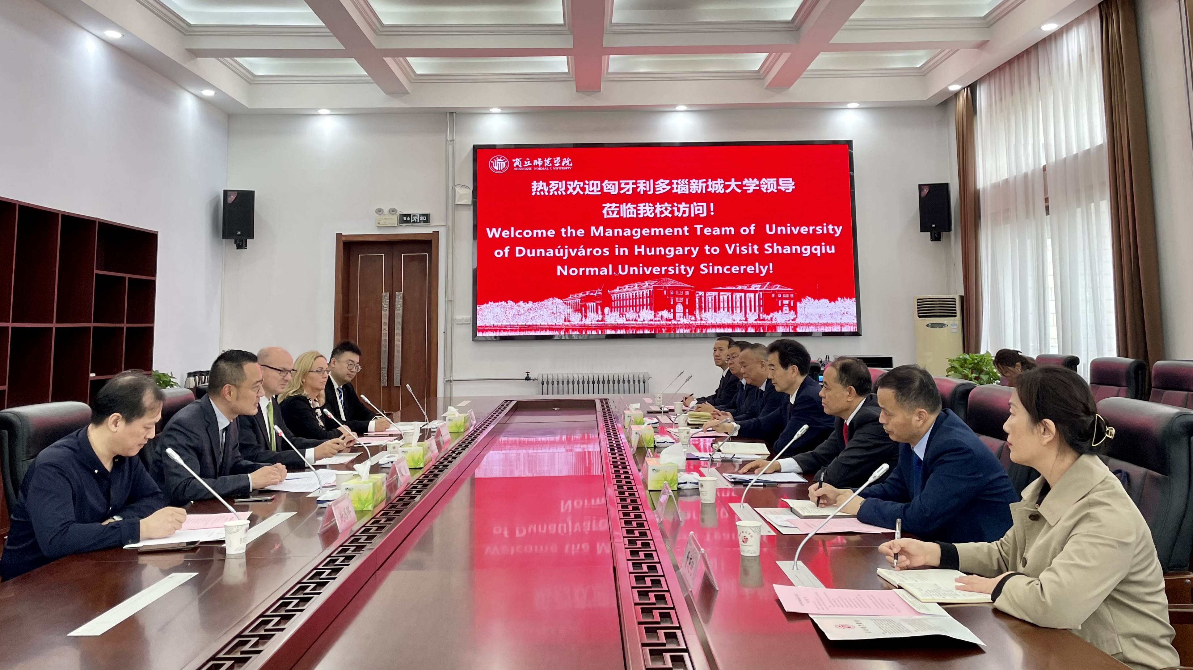 国际交流处和国际教育学院负责同志与多瑙新城大学的领导共同深入探讨了进一步的合作模式,包括合作办学项目的提升、师生互访、学分互认、联合培养、留学生资助政策等相关内容。