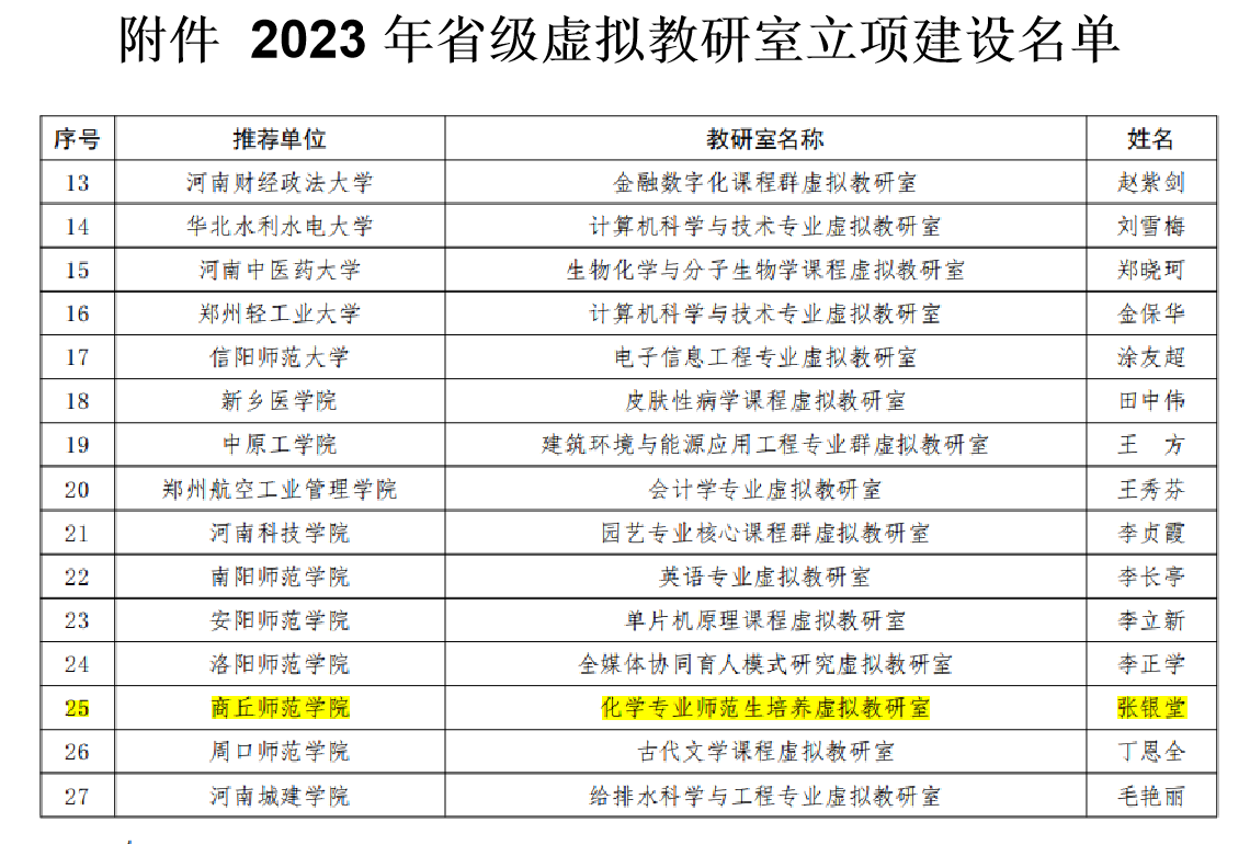 近日,河南省教育厅公布了关于2023年本科高校虚拟教研室立项建设名单。玩滚球官网申报的“化学专业师范生培养虚拟教研室”获批入选。