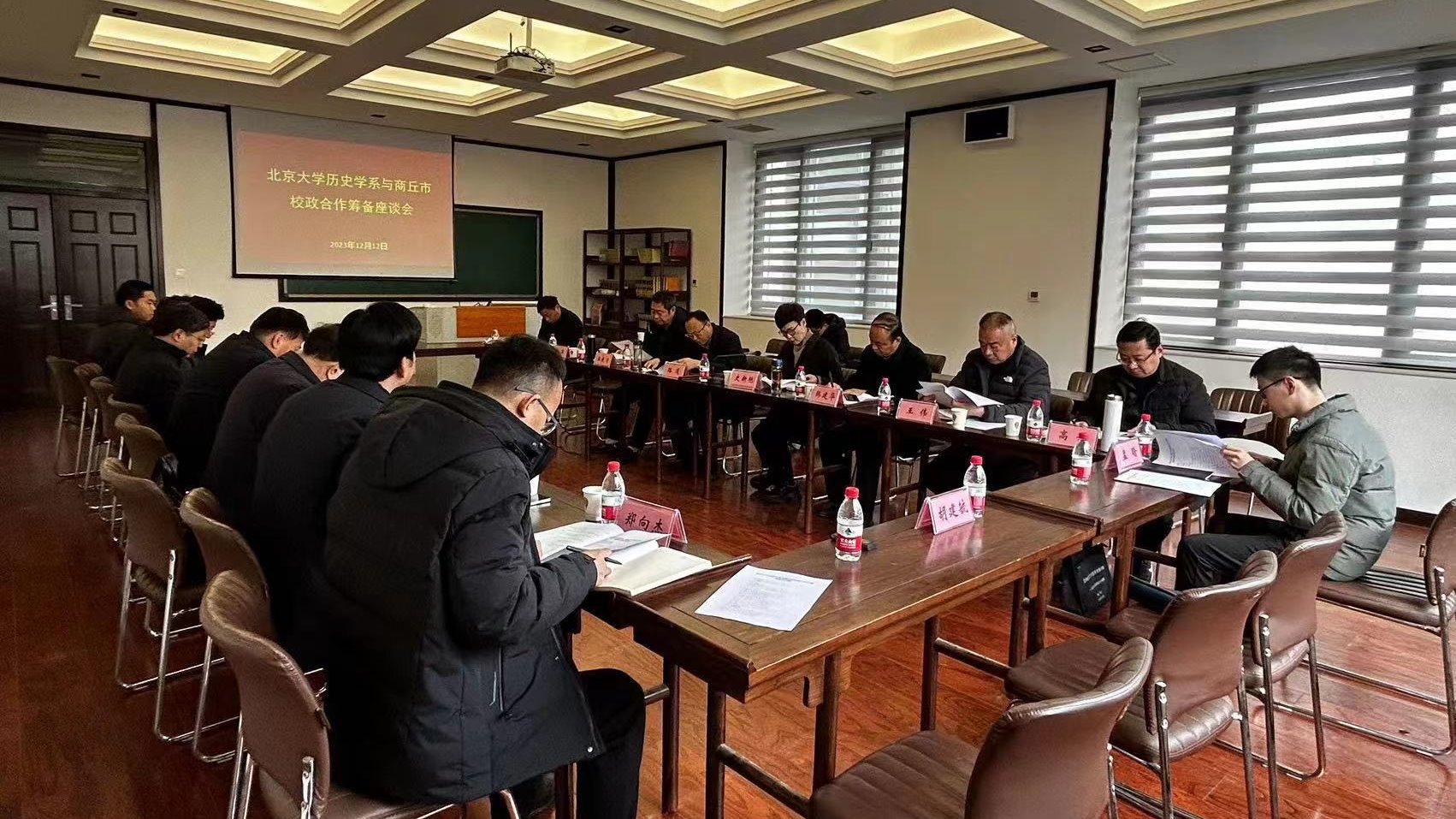 2024年1月中旬,北京大学历史学系将应商丘市人民政府邀请莅商参加校政合作系列活动。为办好这次活动,12月12日,商丘市文广旅局邀请商丘市文物考古研究院、玩滚球的十大正规平台的专家学者在玩滚球的十大正规平台人文学院应天国学堂召开筹备座谈会。玩滚球的十大正规平台党委副书记吴金山,商丘市文广旅局局长史新艳出席座谈会。吴金山主持会议。