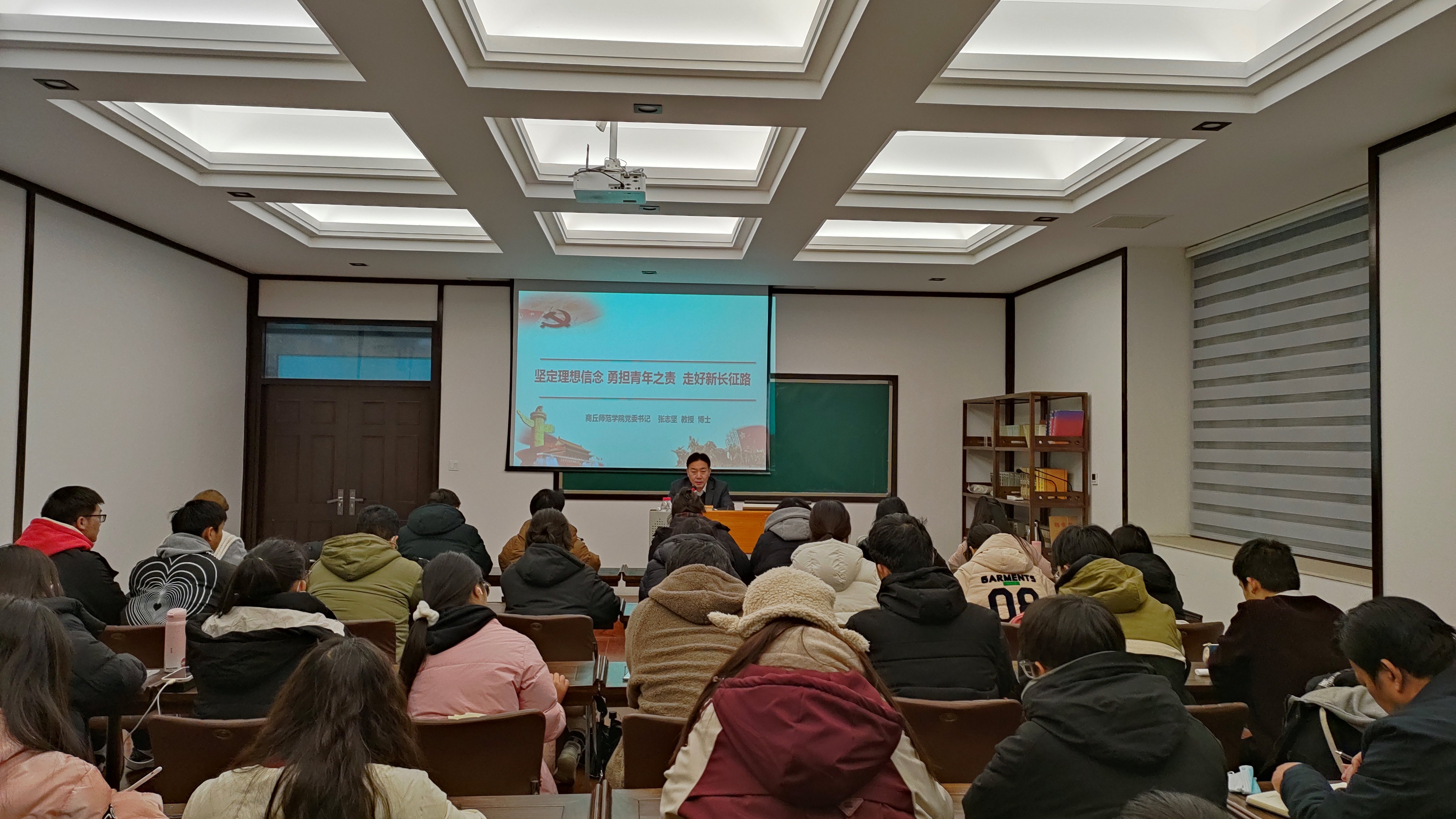 为深入学习贯彻习近平新时代中国特色社会主义思想,切实加强大学生思想政治教育工作,激励玩滚球官网青年学子奋进新征程、建功新时代,玩滚球官网党委书记张志坚以《坚定理想信念 勇担青年之责 走好新时代长征路》为主题,分别于12月12日、14日为经济管理学院、人文学院师生讲授思政课。