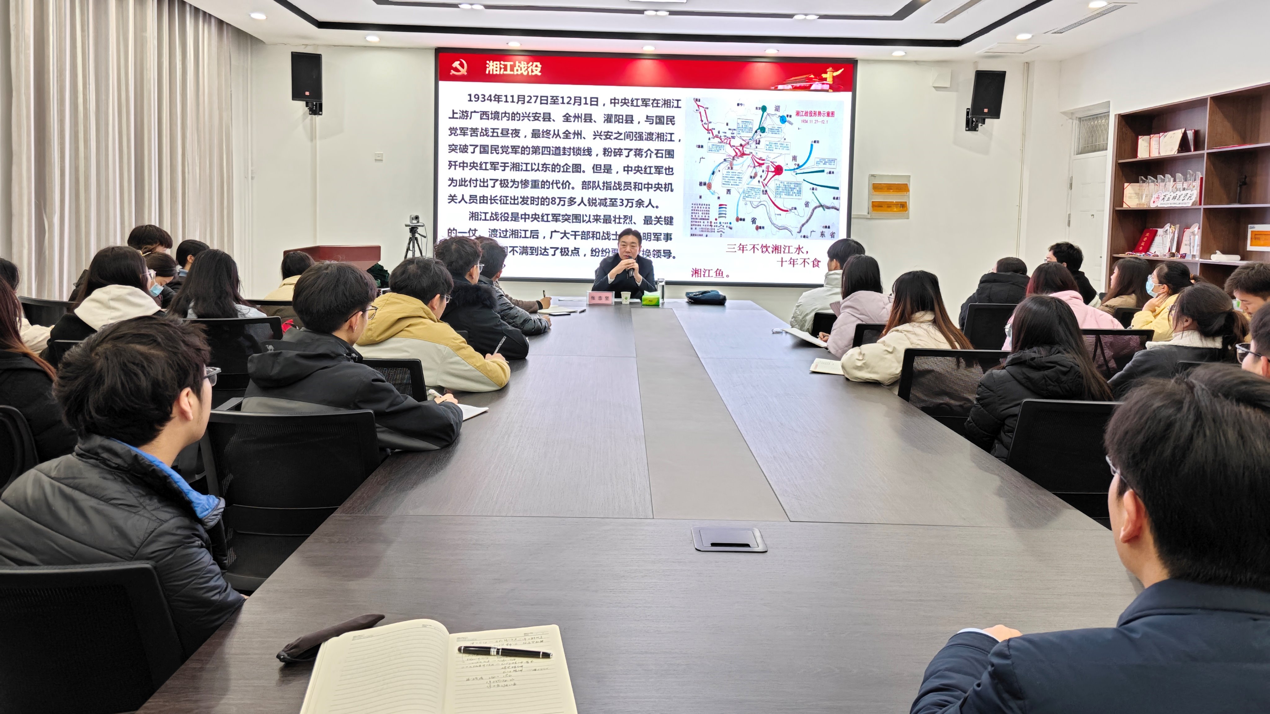 张志坚聚焦坚定理想信念、传承红色基因、勇担青年使命等内容,以生动的案例、启发式语言引发学生思考,为青年学生讲授了一堂有温度有深度的思政课。他勉励青年学子:一要加强理论学习,自觉把伟大建党精神内化于心外化于行,转化为坚定理想信念、锤炼党性和指导实践的强大力量;二要用好“六个必须坚持”的方法论,笃守“一语不能践,万卷徒空虚”的知行合一理念,练就高度的实事求是精神和总结经验能力。三要胸怀远大志向,立志做中国式现代化的推进者,追求高尚纯粹的思想境界,练就扎实过硬的真本领,勇担青年之责,走好新时代的长征路,让青春在不懈奋斗中绽放绚丽之花。