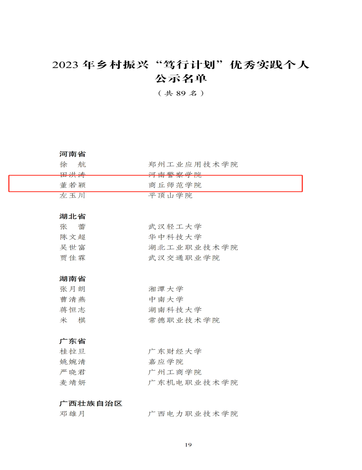 近日,团中央青年发展部公示通报了2023年全国大中专学生“三下乡”社会实践活动之乡村振兴“笃行计划”专项行动总结结果,玩滚球官网教师教育学院团委书记董若颖获评2023年乡村振兴“笃行计划”优秀实践个人。