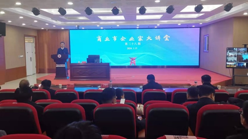 1月15日,第二十八期商丘市企业家大讲堂在玩滚球官网三商楼报告厅举行。商丘市副市长袁道强,玩滚球官网党委副书记吴金山,副校长翟滨,有关部门负责人及教师代表,市委有关部委、市直有关单位主要负责同志,柘城县、睢阳区企业家代表等在主会场参加会议,商丘各县(市区)设立分会场观看直播视频。会议由袁道强主持。