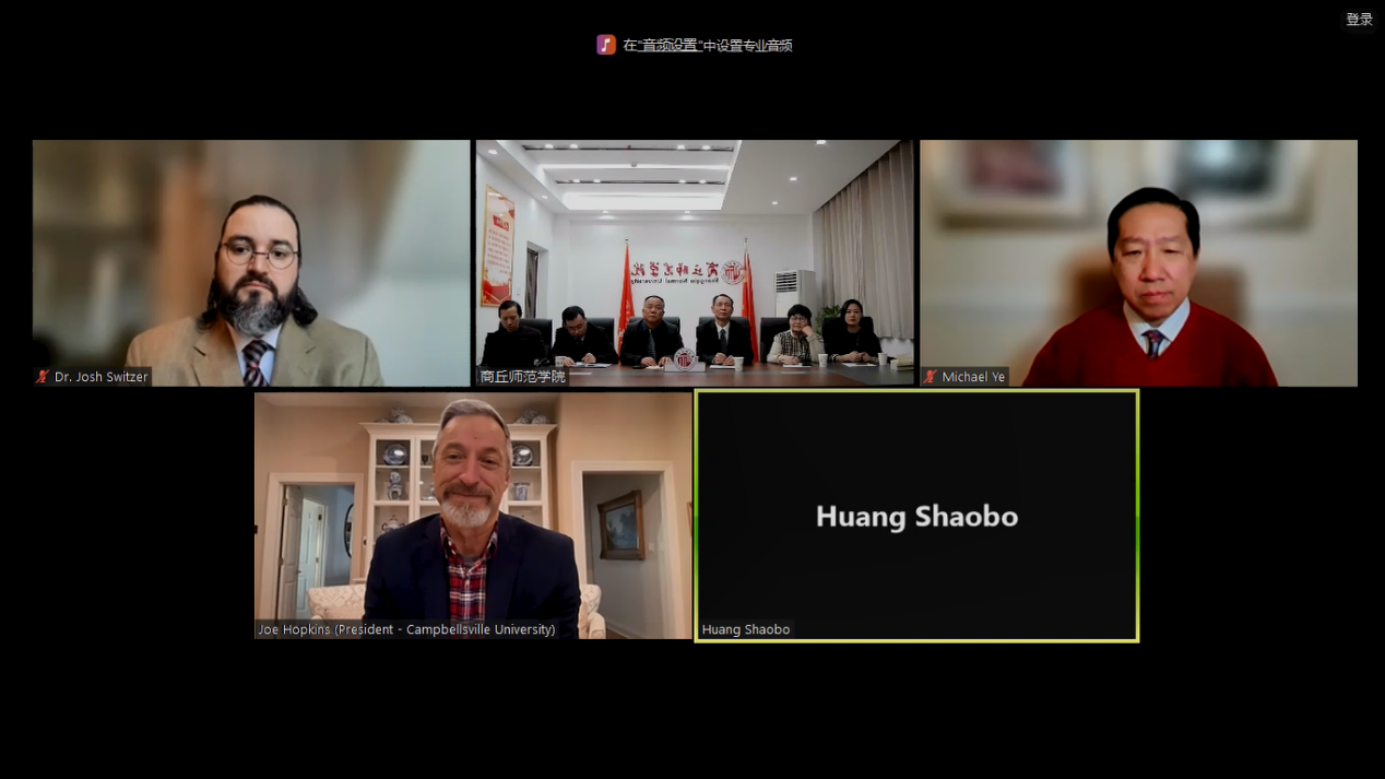 1月17日,玩滚球官网与美国康博斯威尔大学(Campbellsville University)举行了中外合作办学线上视频交流会,玩滚球官网副校长张箭,康博斯威尔大学校长约瑟夫·霍普金斯、副校长约书亚·斯威策等出席了此次视频会议。