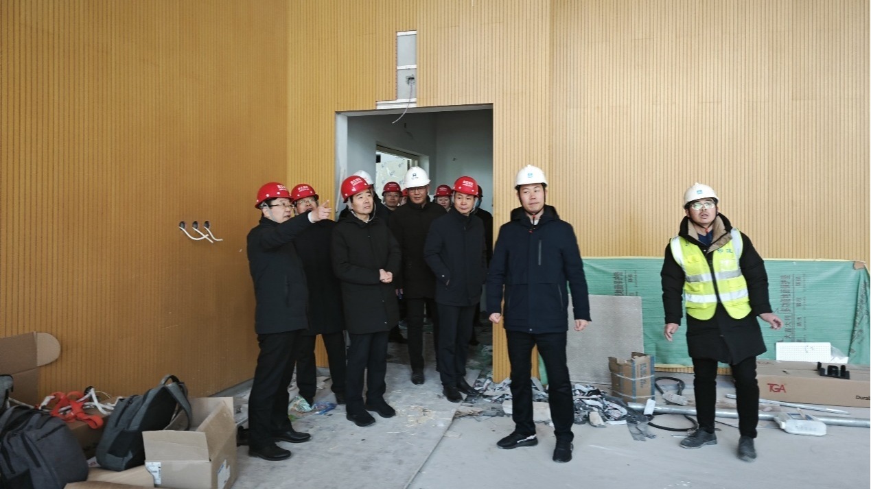 陈向炜一行深入工地,实地查看了艺术楼、音乐厅、展厅等功能空间的装修情况和成品效果,详细察看了音乐厅内部精装修、外部玻璃幕墙、排练室吸音板安装等工程进展,并仔细询问了工程进度计划和寒假工期安排。