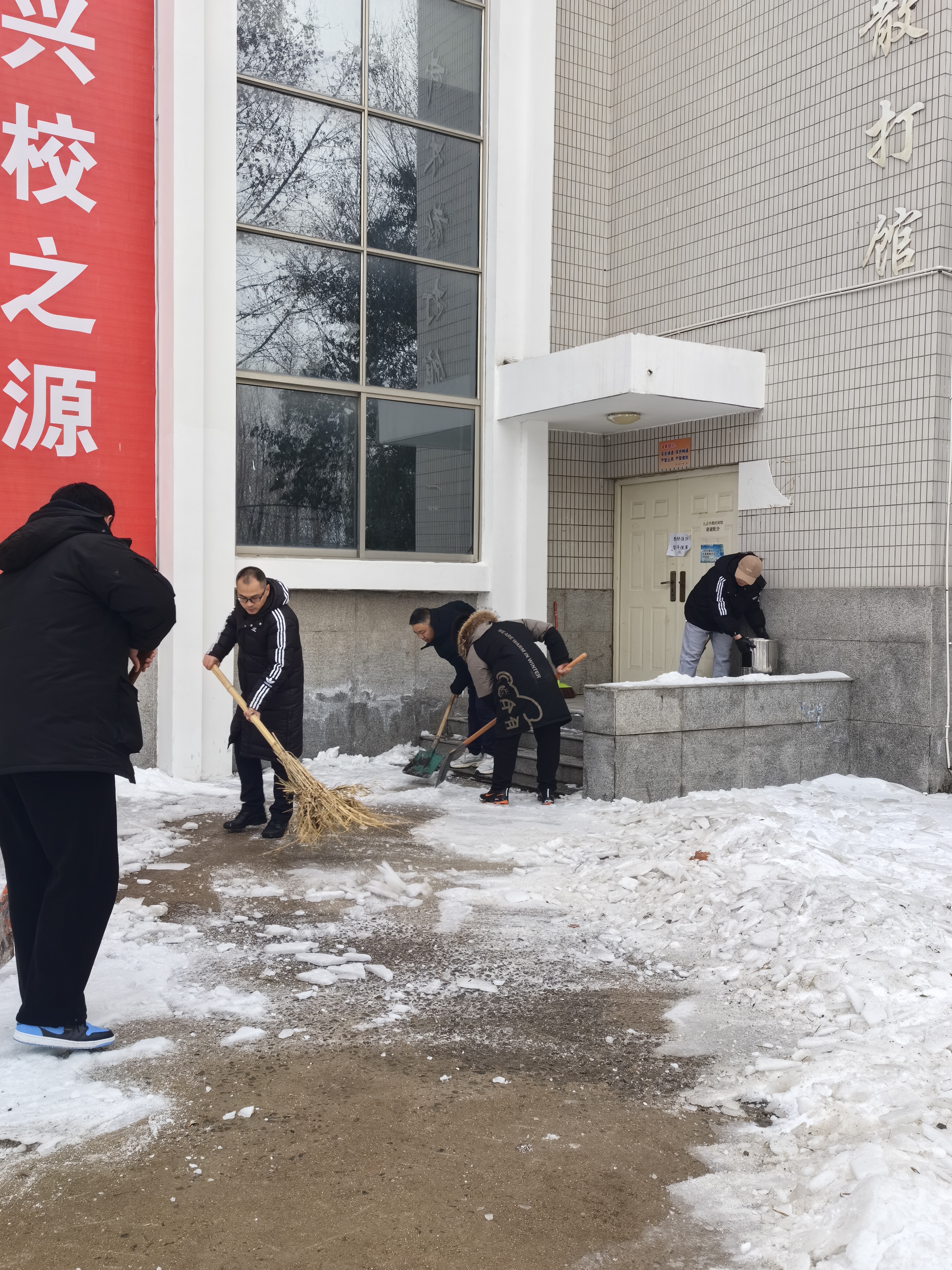 开学前夕,受寒潮影响,玩滚球官网校园积雪严重。为进一步确保师生平稳、安全、有序返校,保证学校平安开学、开学平安。玩滚球官网组织教职工开展扫雪除冰志愿服务活动,最大程度为学校春季开学的有序进行保驾护航。