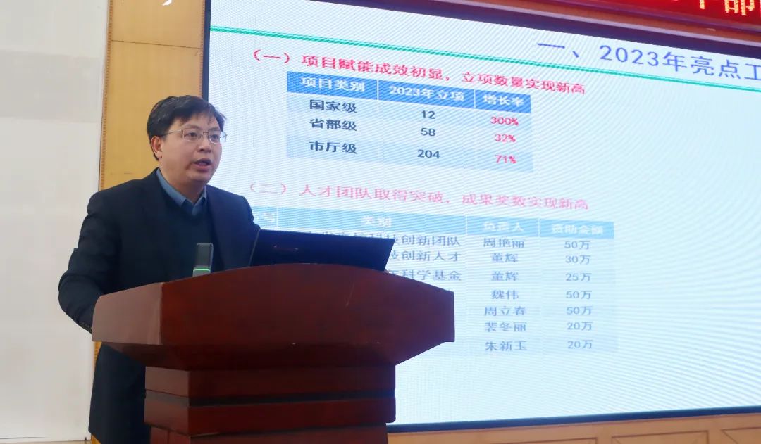 2024年学校锚定促进学校高质量发展为这一目标,围绕申硕工作和内涵提升关键指标,实施科研氛围营造计划、高水平成果打造计划和社会服务能力提升计划,重点抓好项目申报、平台建设、成果打造和交流合作。抓项目申报,坚持为人才成长赋能。构建人才画像,精准遴选专家,集中辅导,提升质量。抓平台建设,坚持融合发展和提质增效。推动平台积极投身经济社会发展,推动融入更高能级创新平台。抓成果打造,坚持谋划整合和特色凝练。凝练方向,整合校内外资源,力争实现省科学技术奖新突破。抓交流合作,坚持目标导向和营造氛围。支持以高层次项目申报、高水平平台建设、高层次成果奖申报为导向的学术交流;鼓励举办跨单位、跨学科的学术交流。新的一年,我们坚持“拓展范围实现量的增长,巩固优势实现层次的突破,交叉融合实现特色的打造、为经济社会高质量发展和高水平应用型大学的建设做出更大贡献。