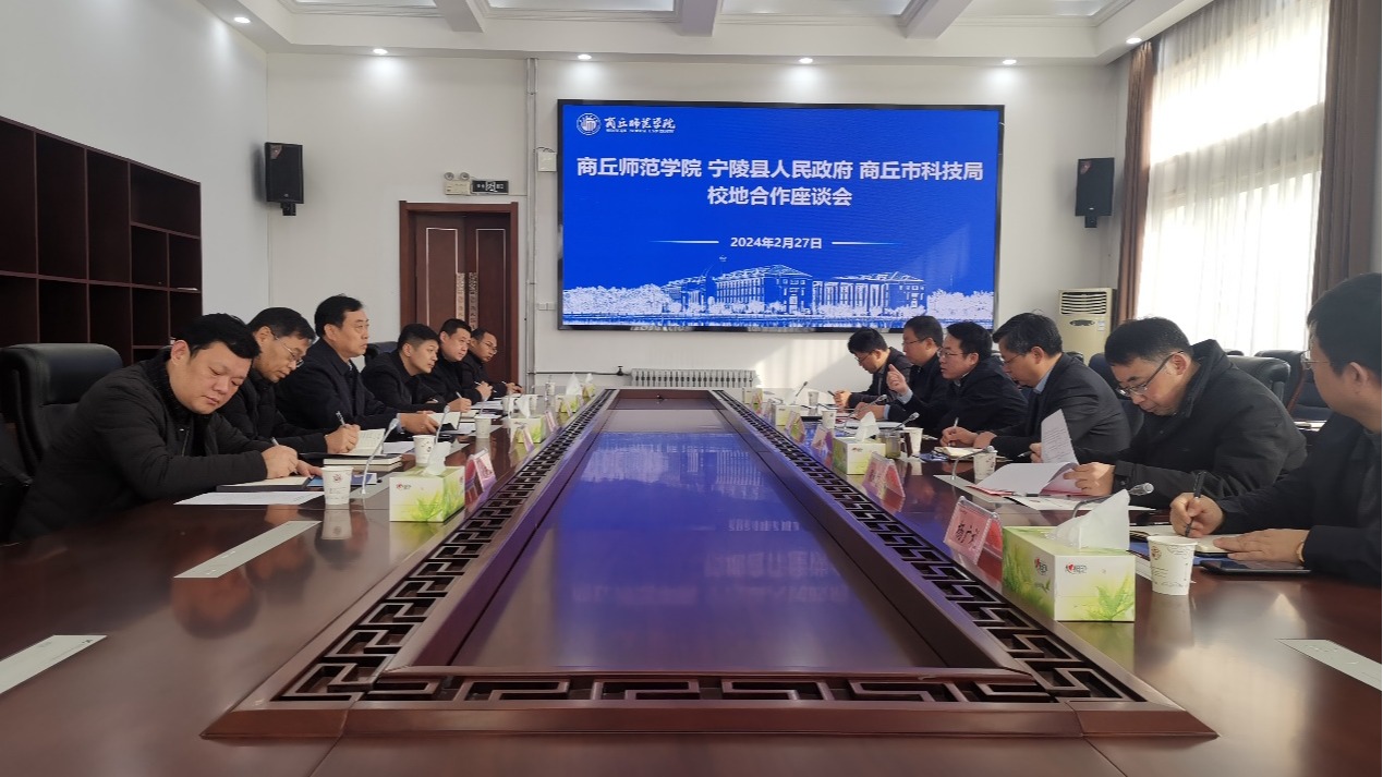 2月27日,玩滚球官网与宁陵县人民政府、商丘市科技局在归德楼320会议室举行校地合作座谈会。宁陵县人民政府副县长卢泓亦、宁陵县工业信息化和科技局局长赵辉、副局长刘新亚,商丘市科技局副局长孟强、科长朱志伟,玩滚球官网副校长翟滨,科研处、校地合作与服务中心及相关学院负责人参加座谈会。