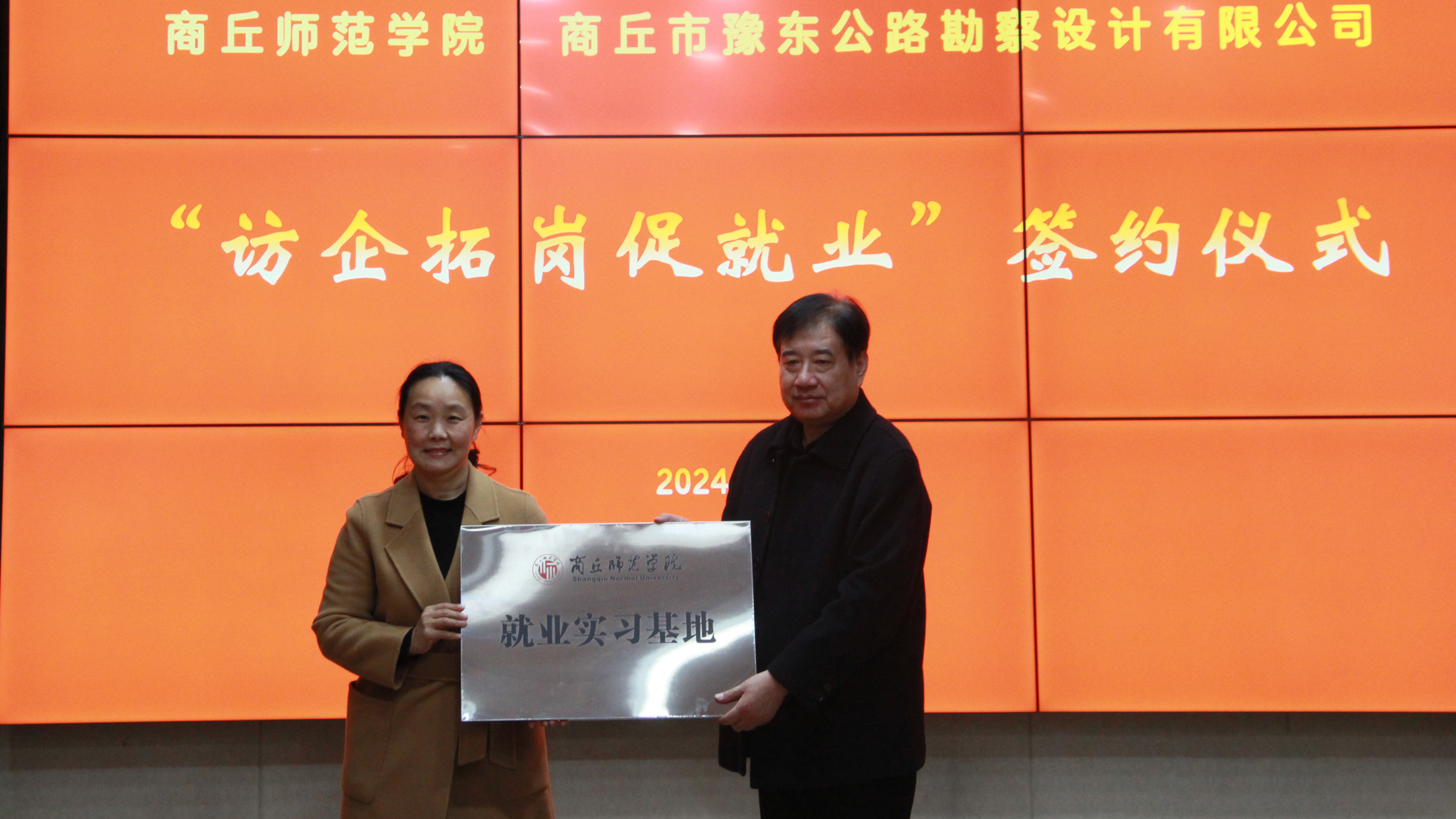 王晓征、华学礼分别代表玩滚球的十大正规平台和商丘市豫东公路勘察设计有限公司签署毕业生就业实习基地协议,并现场举行了就业实习基地授牌仪式。