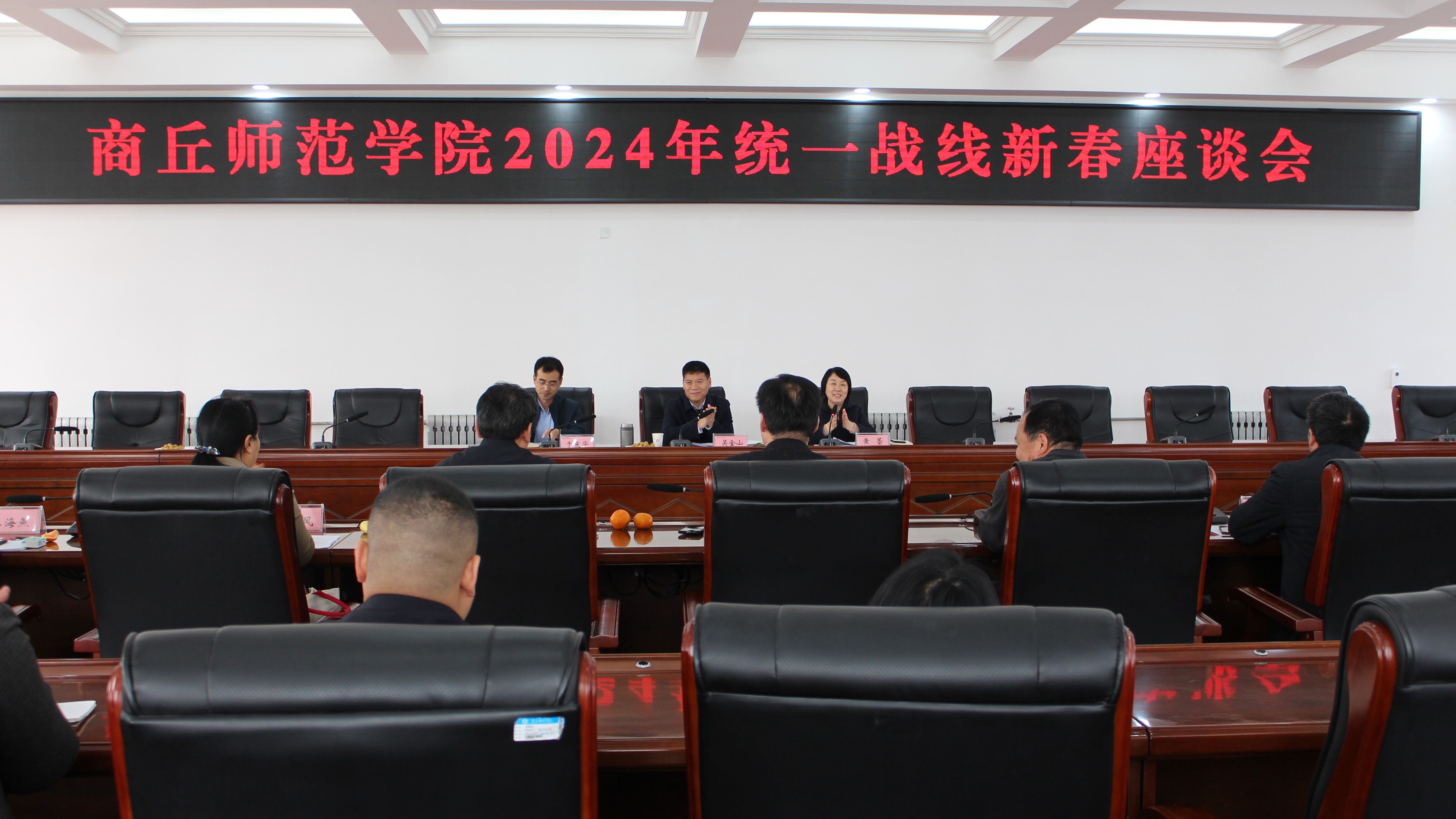 3月15日,玩滚球官网在归德楼419会议室举行2024年统一战线新春座谈会。校党委副书记吴金山出席会议并讲话。