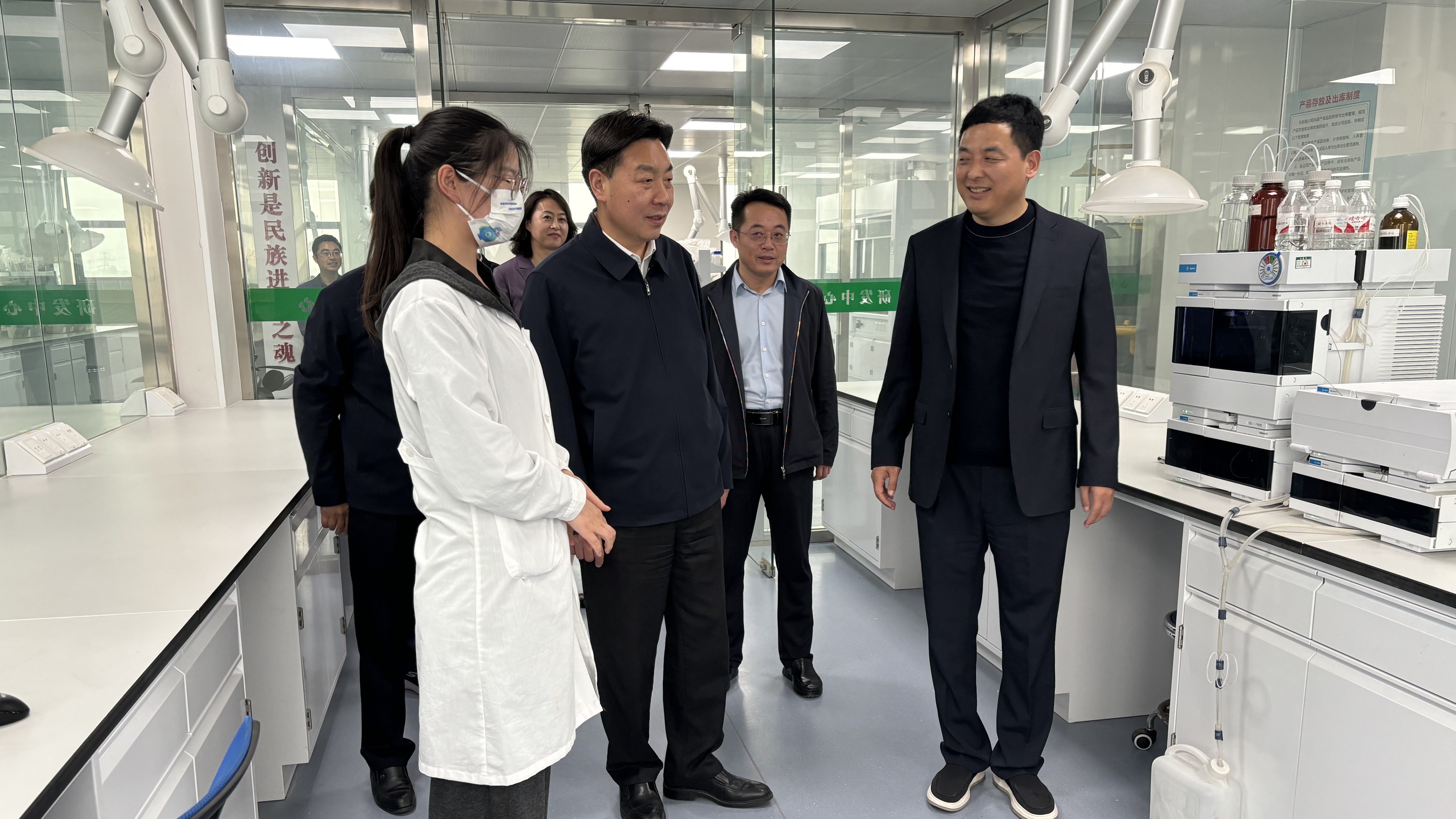 张志坚一行在祝春华的陪同下,先后考察了春华秋实科技集团有限公司产品研发平台、检测平台、生产车间和党建工作区,详细了解企业文化、产品研发、生产经营和人才需求等情况。
